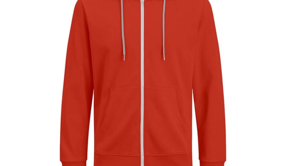 A stylish zipper hoodie with modern detailing, perfect for casual wear and layering during cooler months.